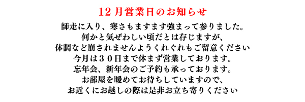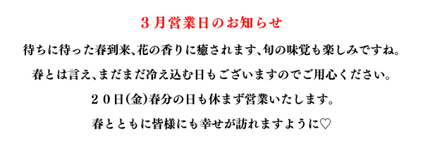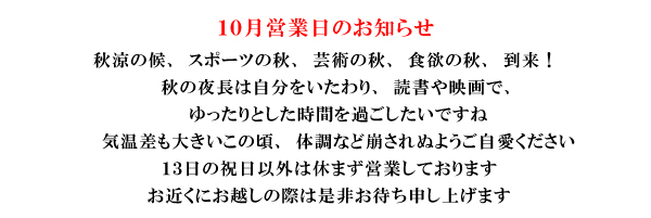 日曜・祝祭日はご予約のみ営業いたします。